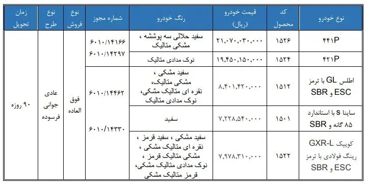 متقاضیان خرید خودروهای مندرج در جدول باید با مراجعه به سایت فروش سایپا نسبت به ثبت یا بهروزرسانی اطلاعات شخصی خود و دریافت کد کاربری و رمز عبور اقدام کنند.