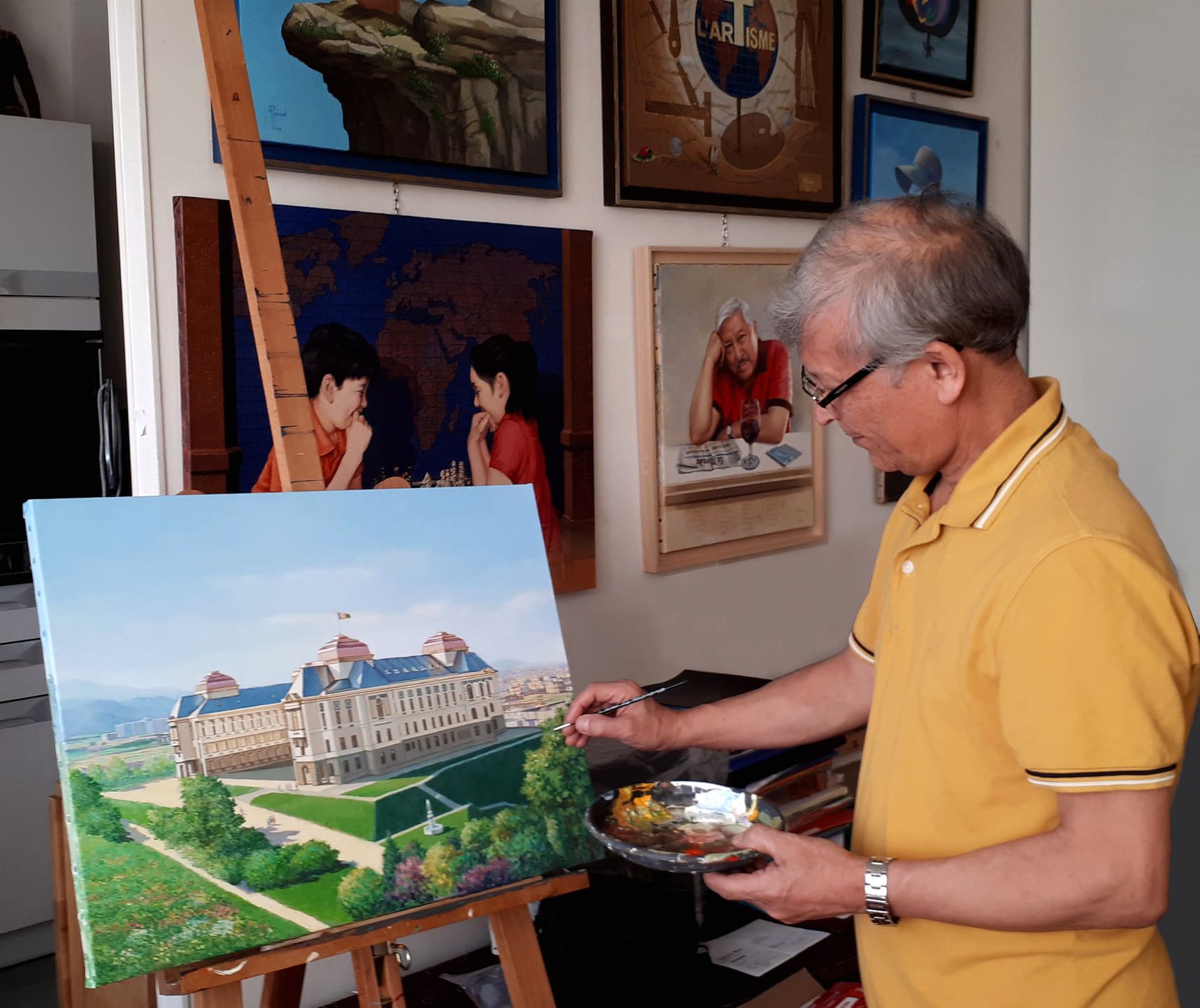 حفیظ پاکزاد حین خلق تابلوی «بودای بزرگ»، ۲۰ سال قبل