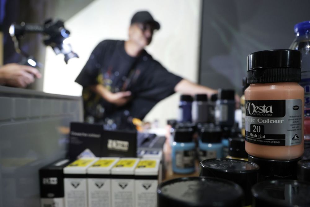 اثری که در تصاویر میبینند با متریالهای متنوع وستا اعم از رنگهای متنوع و ادتیوها در سه روز پیاپی خلق شده است؛ روز پایانی متین احمدی در پدید آمدن این اثر در کنار کومار بود.