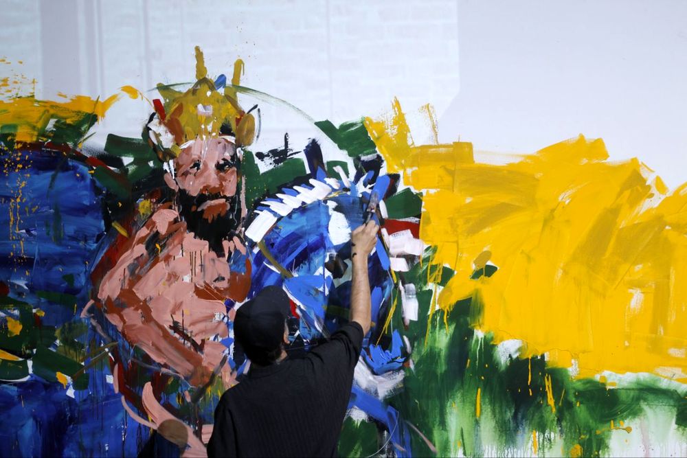 رنگ وستا در کنار مانی کومار، هنرمند جوان شناخته شده قرار گرفت تا تابلویی درخشان با ابعاد خیره کننده ۳متر در ۵متر خلق شود.