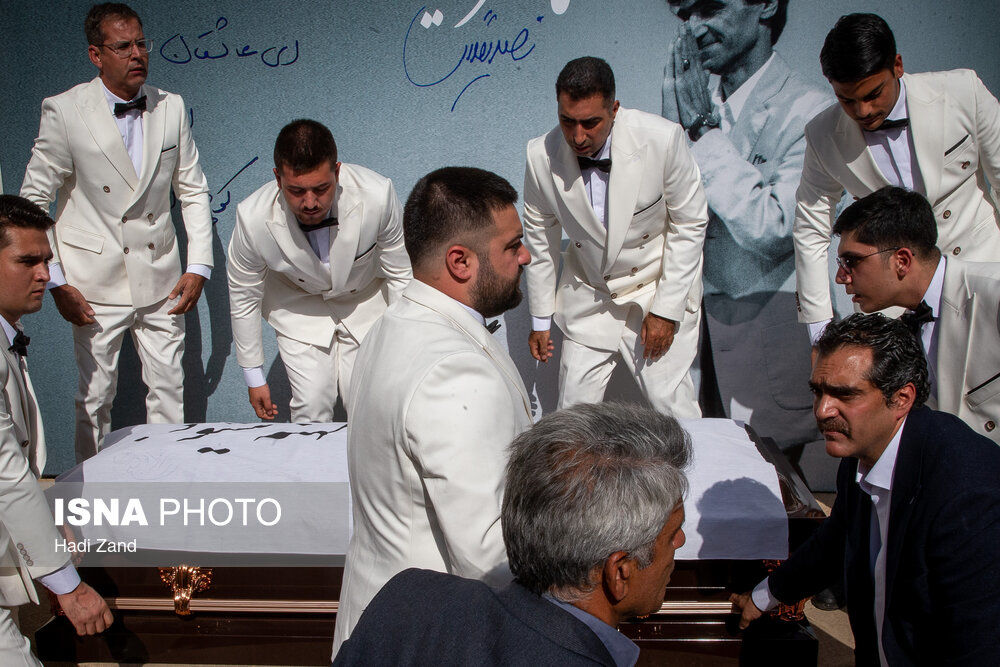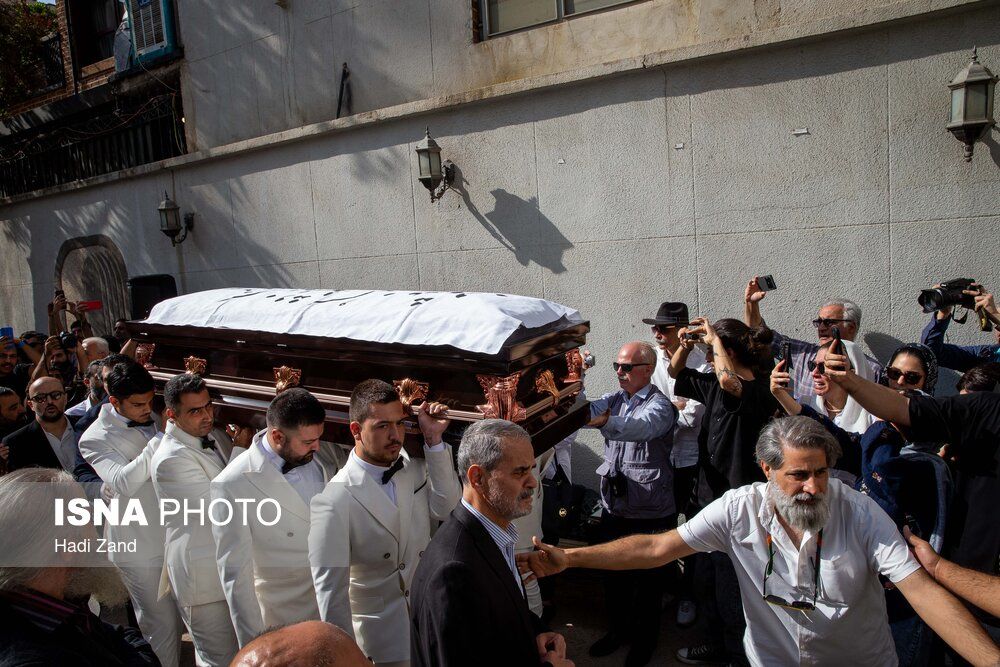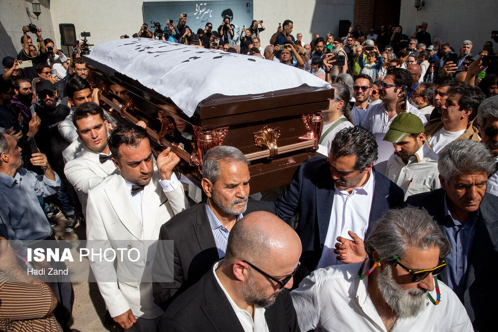 ببینید: بدرقه ناصر تقوایی با لباس سفید/ حضور پررنگ هنرمندان در تشییع پیکر ناصر تقوایی