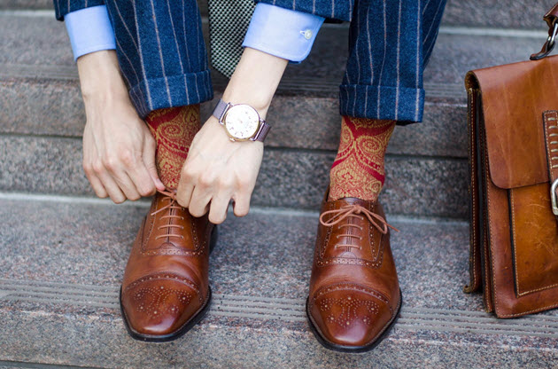 و البته این سبک کم کم، آقایان کت و شلوار پوش را هم شیفته خود کرد. البته تنها زمانی جوراب آقایان دیده می شود که جایی بشینند.