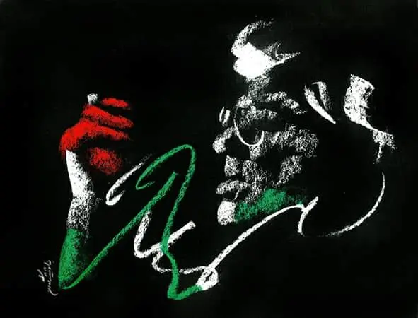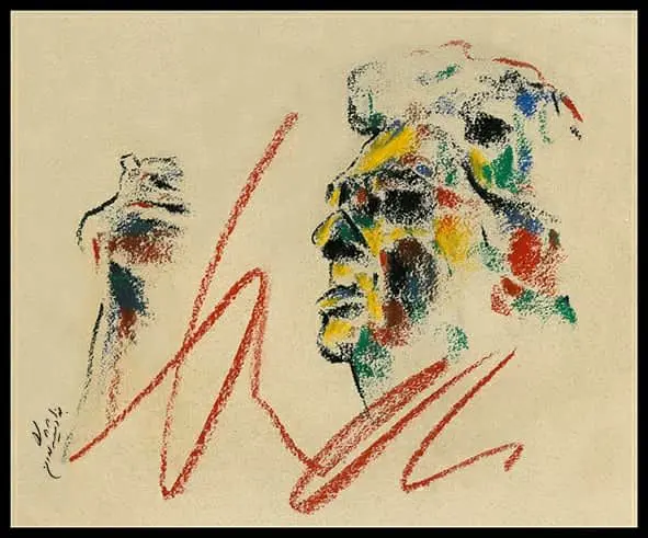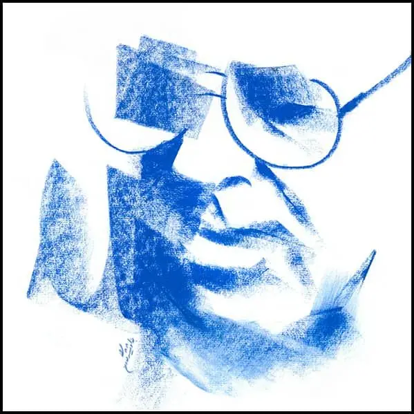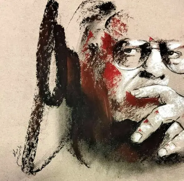 In these works, Shishegaran does not attempt a physical likeness of Shamlou; rather, he seeks to recreate the poet’s “presence”—a presence oscillating between poetry, protest, collective memory, and image. Shishegaran’s mastery lies in his ability to construct a multilayered mythic figure through shifts in line, color, and intensity of expression: a Shamlou who is simultaneously an individual, a historical force, an act of resistance, and a repository of memory.