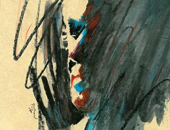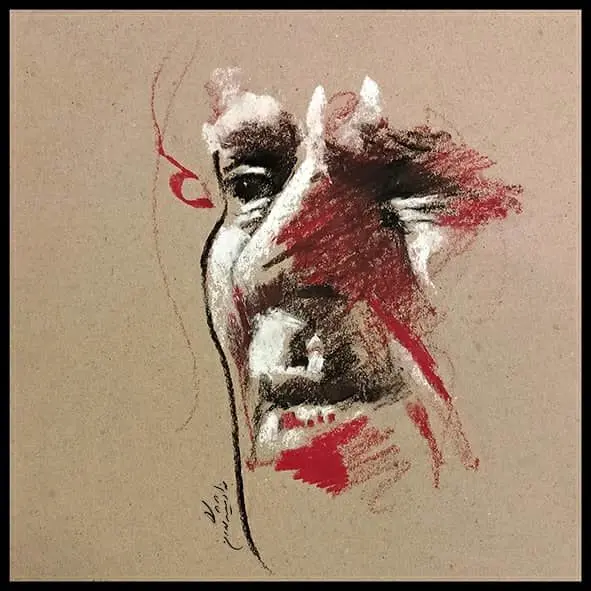 The works are primarily executed using pastel, charcoal, pencil, and mixed media on cardboard. This material combination reflects the emotional depth and rebellious spirit of Shamlou; broad surfaces and rapid touches suggest movement and firmness. Moving beyond superficial resemblance, this approach emphasizes the poet’s intellectual and spiritual dimensions through layers of matte and glossy textures, conveying his inner world with remarkable mastery. The multiple variations allow for an exploration of Shamlou’s emotional and social transformations from diverse angles.