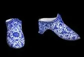 Iranian 17th-century life-size ceramic shoes are on display at the British Museum