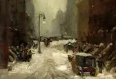 "برف در نیویورک" یک نقاشی ساده، با پرسپکتیو یک نقطهای و فاقد جزییات خاص اما بسیار محبوب است.