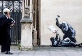 «بنکسی» اثر هنری جدید خود را بر روی دیوار دادگاه عالی لندن خلق کرد.