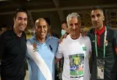 پدر جواد نکونام هم در سالن همایش بانک شهر برای مراسم معارفه سرمربی جدید آبی ها حاضر شد.