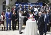 کیک صلح و دوستى توسط صلاح زواوی سفیر دولت فلسطین در ایران و دکتر رضا سیدان نائب رییس شبکه انجمنهاى دوستى بریده شد