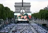 تماشاچیان خوشاقبال توانستند فیلم کلاسیک "بازدیدکنندگان" با بازی ژان رنو را در خیابان شانزهلیزه تماشا کنند.