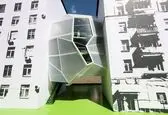طراحی این ساختمان به گونهای است که مانند یک قوطی معلق به دو ساختمان مسکونی اطرافش چسبیده است.