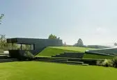 سقف ویلایی در کالیفرنیا به وسیله پوشش سبز و چمن به زمین متصل شده است.