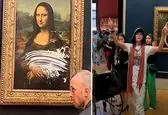 مردی در لباس یک پیرزن در موزه لوور بر روی نقاشی معروف مونالیزا اثر «لئوناردو داوینچی» کیک مالید.
