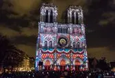 نمای سردر کلیسای جامع نوتردام پاریس امسال هم به سنت پارسال در ماه اکتبر نورپردازی شده است.